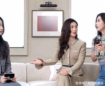 这次采访朱珠,其实是品牌方请的,主持人翁青雅表现得特别“厉害”。一开始就是那个备受争议的“开门”场景,大家讨论得热火朝天。这个直播采访的设计其实就是从摄像头的角度拍翁青雅,敲门后,屋里的朱珠马上就出现了,感觉有点像其他时尚活动开始前的预热视频。镜头马上转到屋里,没想到翁青雅和朱珠见了面,就直接走进来往沙发那儿去了。